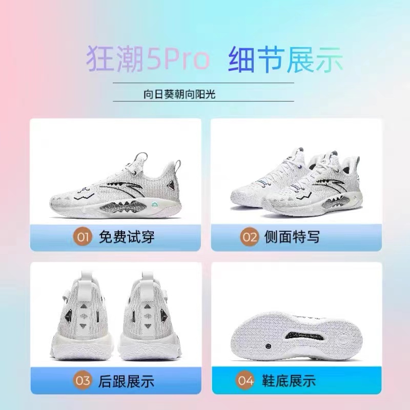 Anta安踏 狂潮5pro总决赛 全新配色 白粉金 篮球鞋男款 咨询客服请看图下标签[红圆][下] 1 双氮中底:氮科技中底+氮科技鞋垫;