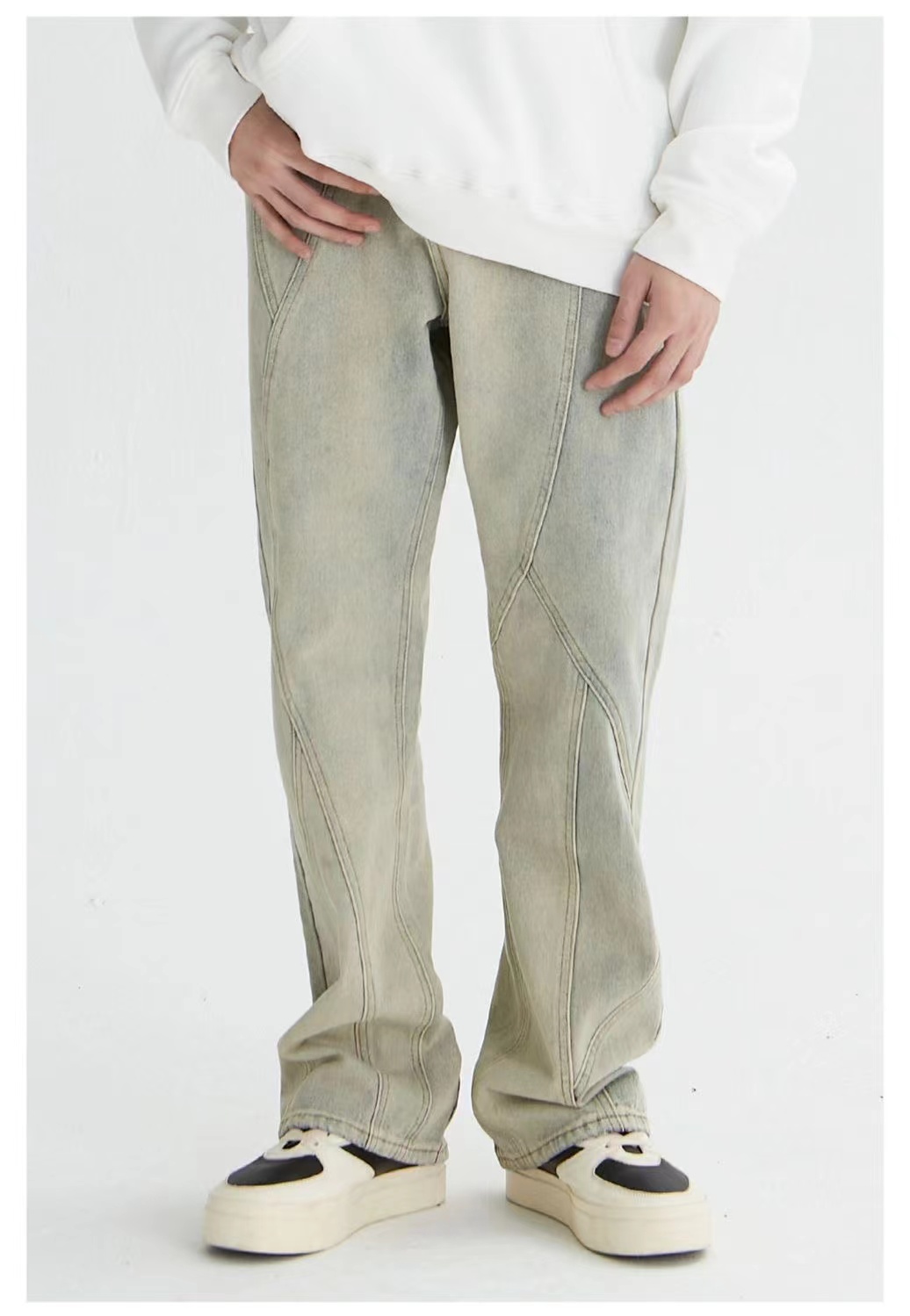 2023美式复古vibe裤子高街潮牌水洗黄泥染牛仔裤男修身显瘦直筒微喇裤