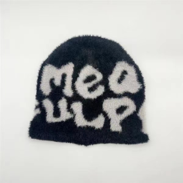 2023韩版简约毛绒字母提花针织帽宽松版保暖护耳显脸小男女款套头帽潮