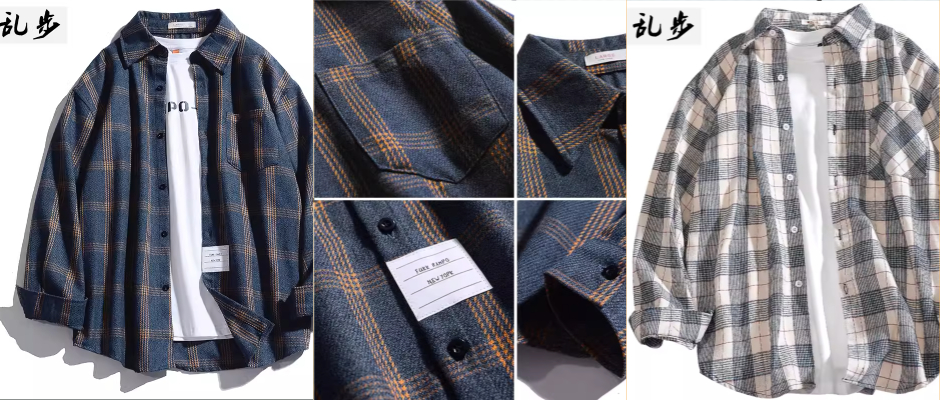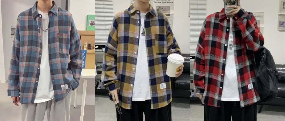 春秋季潮流格子衬衫男痞帅纯棉上衣宽松韩版长袖大码外套男士衬衣 蓝粉方格 M