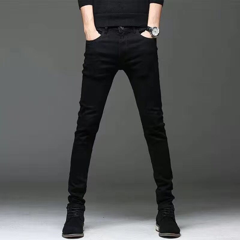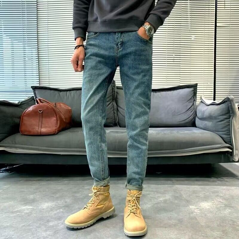深蓝色长裤春秋新修身牛仔裤男网红复古小脚韩版弹力潮流潮牌青年
