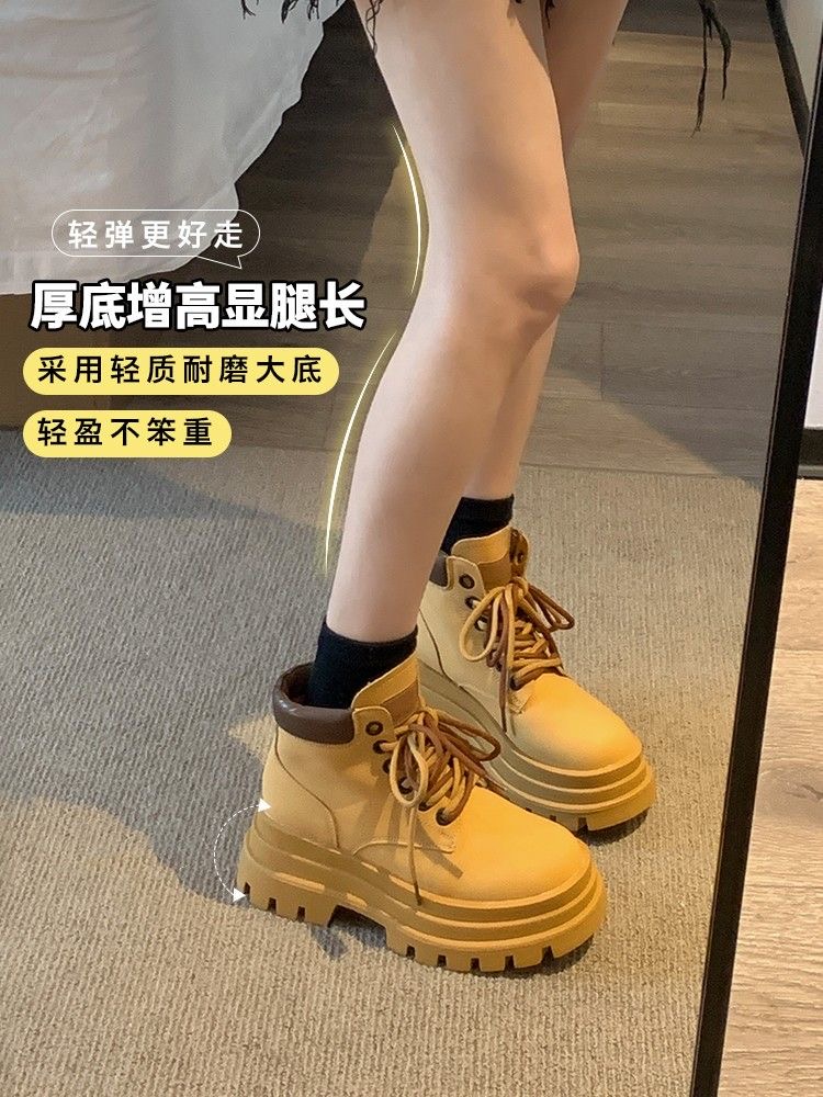 大黄靴系带马丁靴女2023秋冬新款爆款厚底短靴工装风机车短筒靴子