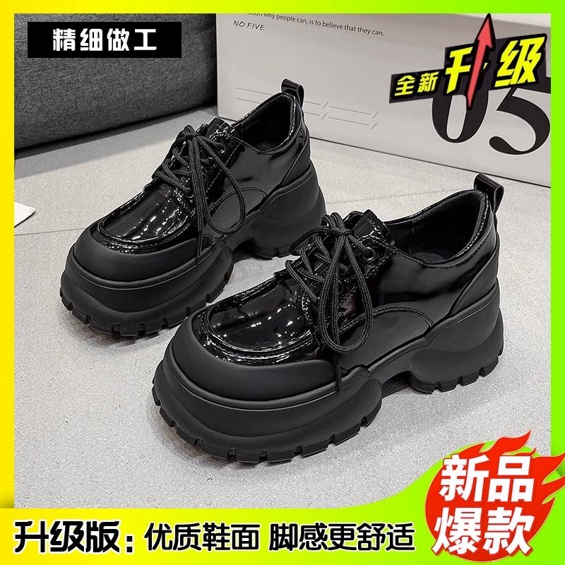 迈适厚底小皮鞋2023年新款松糕底小个子增高鞋时尚系带学院风单鞋