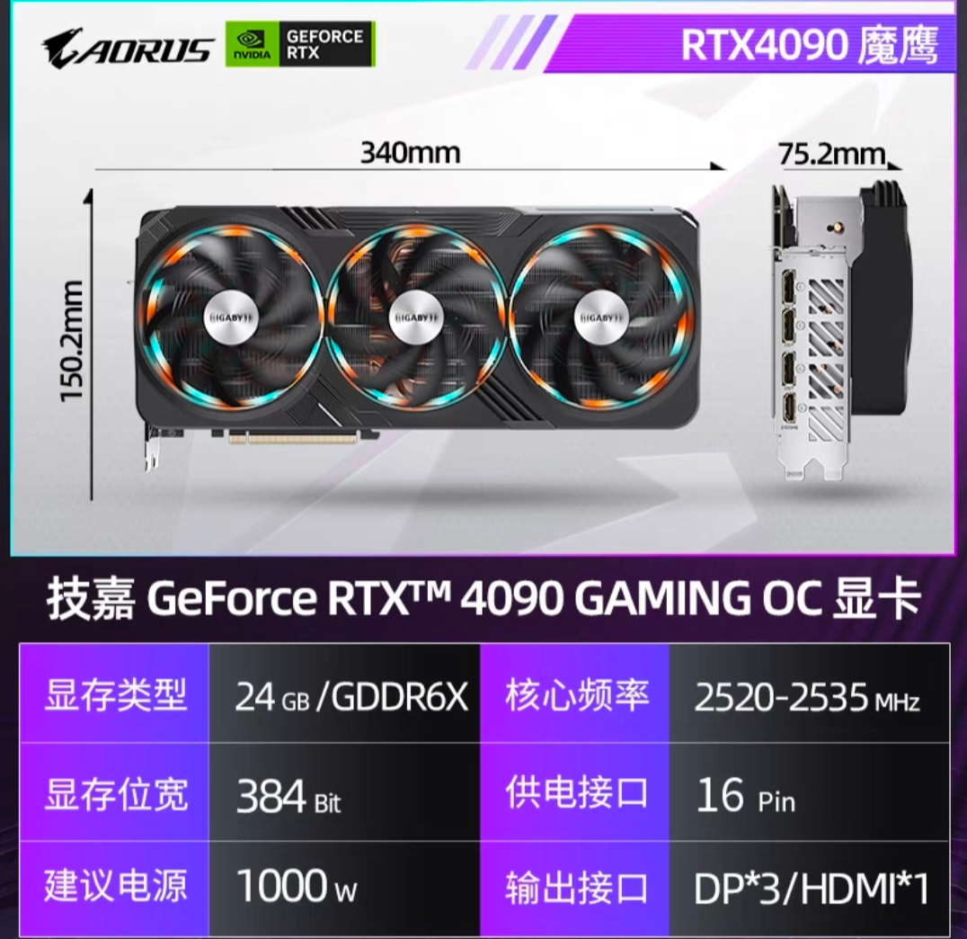技嘉RTX4090台式机电竞游戏Ai绘图设计GAMING BOX显卡坞独立显卡