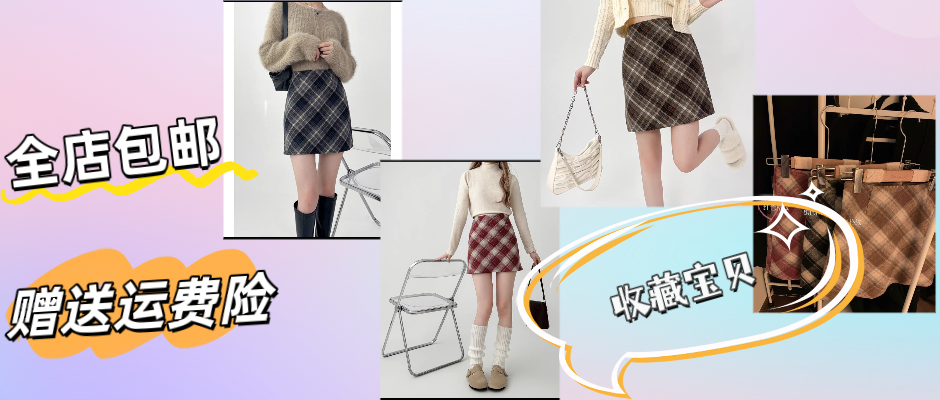 毛呢半身裙秋冬复古短裙女高腰A字格子包臀裙梨形身材