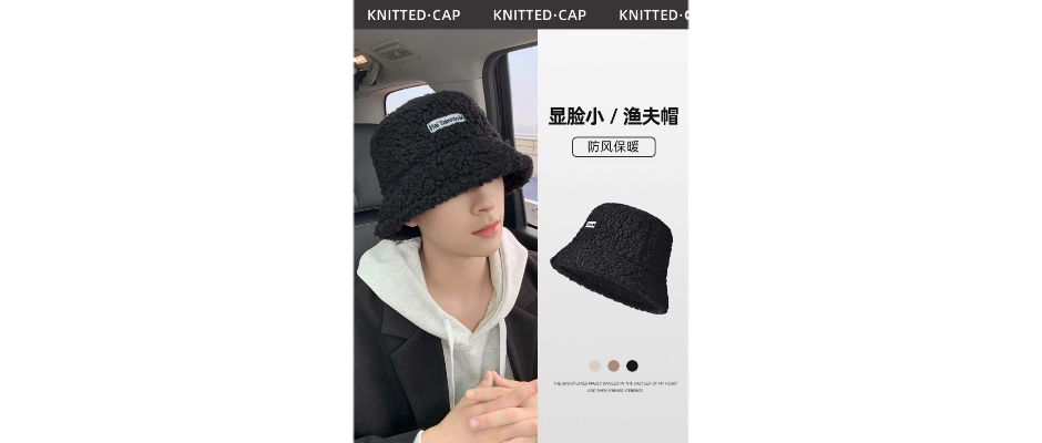 帽子男士冬季仿羊羔绒渔夫帽百搭时尚保暖盆帽显脸小毛绒帽女防寒