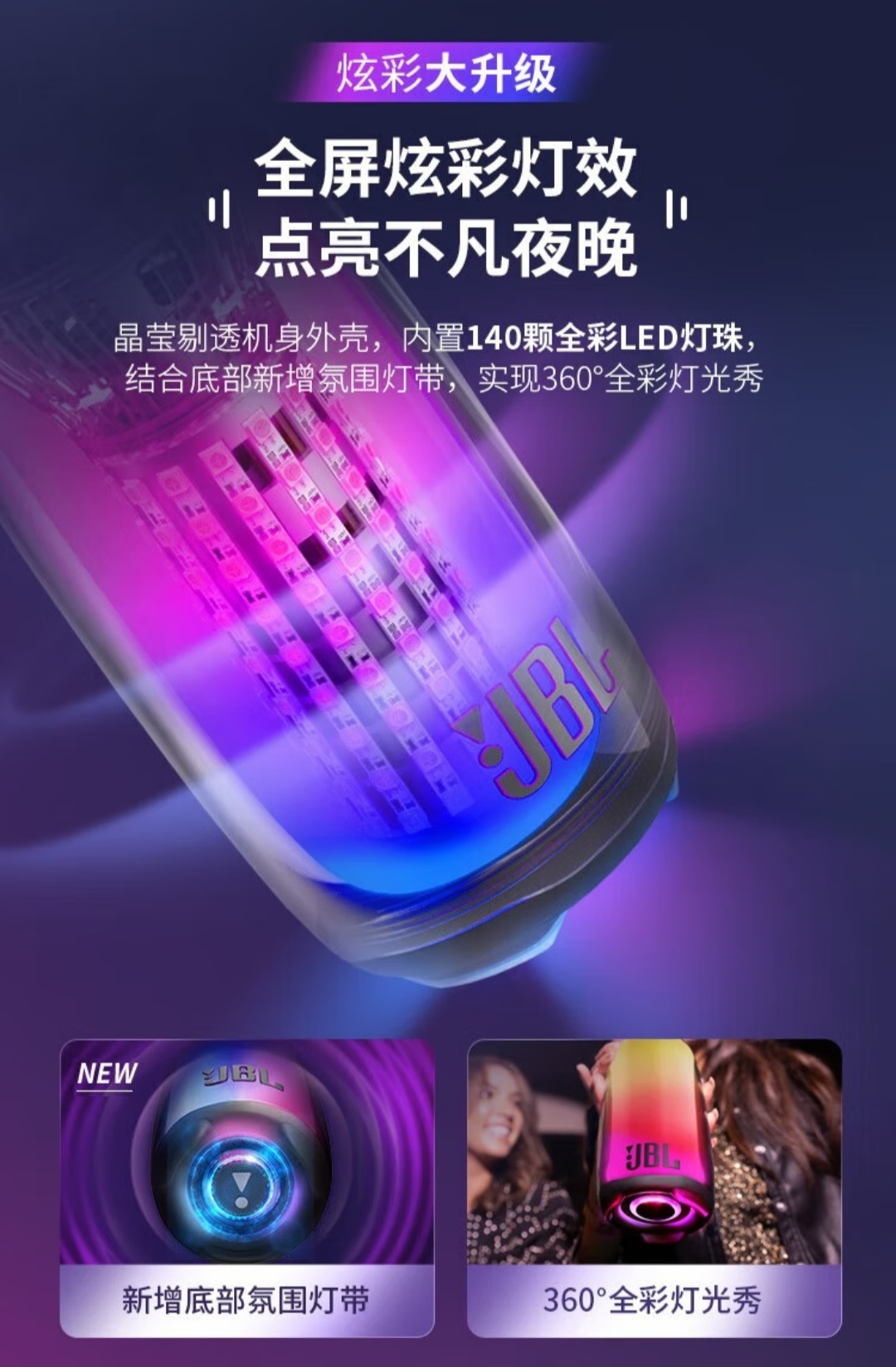 便携式蓝牙音响炫彩 户外低音炮,超长待机,40w大功率