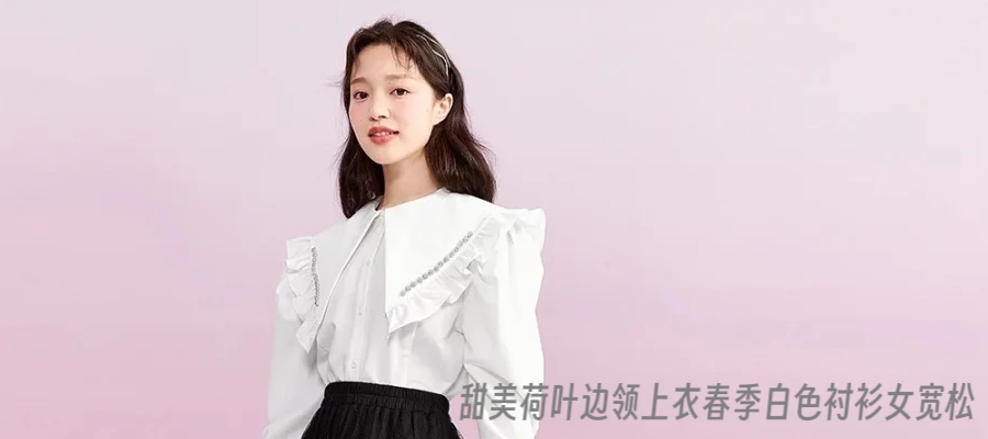 甜美荷叶边领上衣春季白色衬衫女宽松