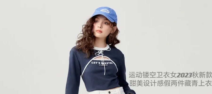 运动镂空卫衣女2023秋新款甜美设计感假两件上衣