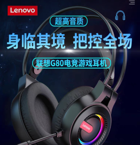Lenovo/联想 电脑耳机头戴式耳麦电竞游戏台式笔记本有线吃鸡听声辩位带麦话筒网吧专用手机通用USB7.1声道
