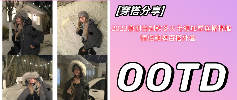 2023原创自制秋冬大毛领加厚连帽棉服情侣潮牌百搭外套