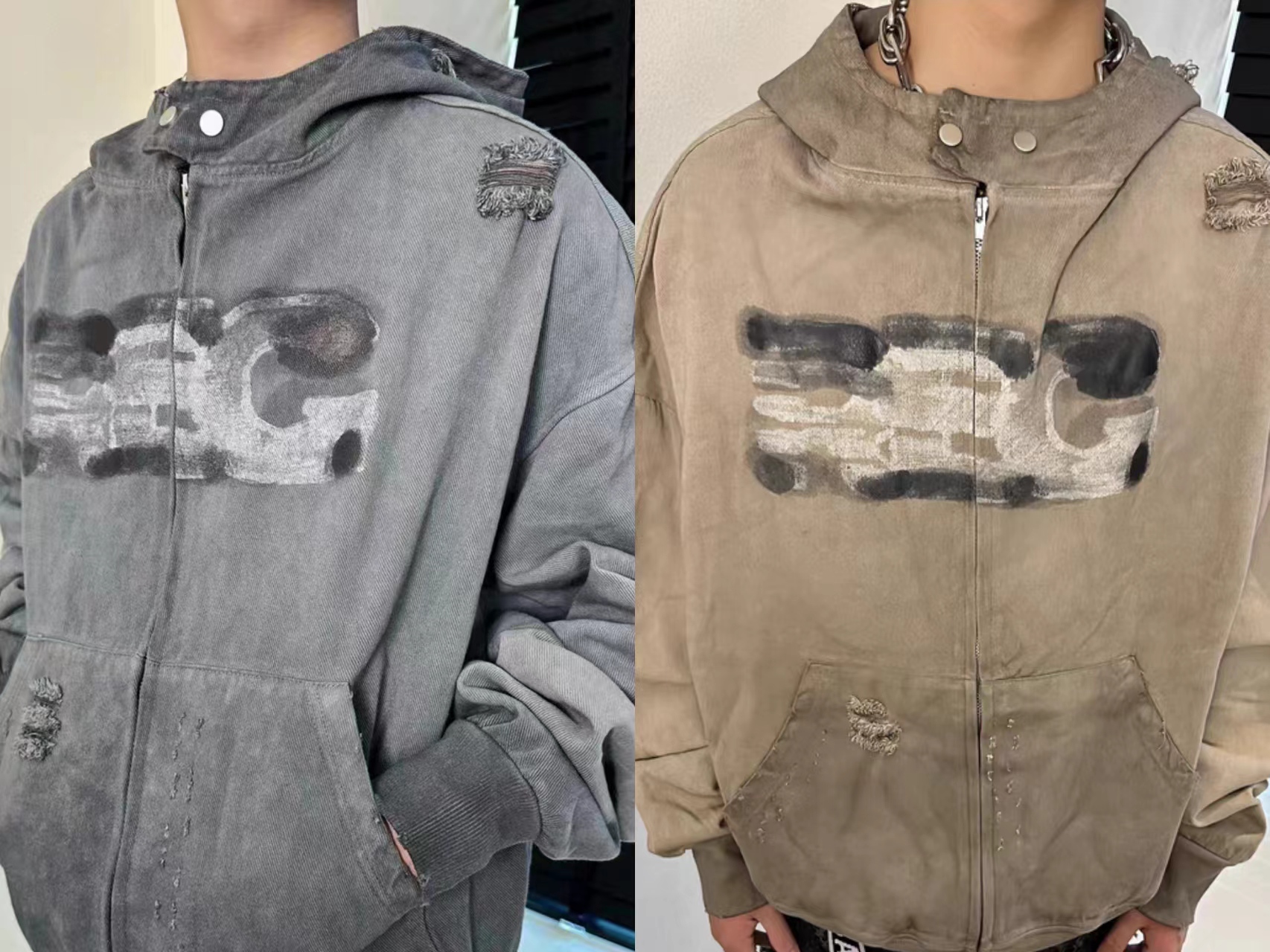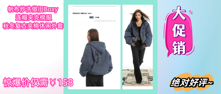 帆布炒洗做旧Boxy连帽夹克棉服 秋冬复古夹棉休闲外套