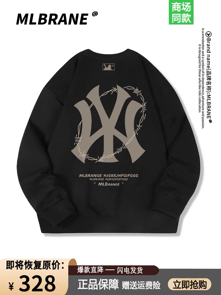 【巨划算】MLBRANE卫衣男秋季重磅宽松圆领套头打底上衣明星秋装