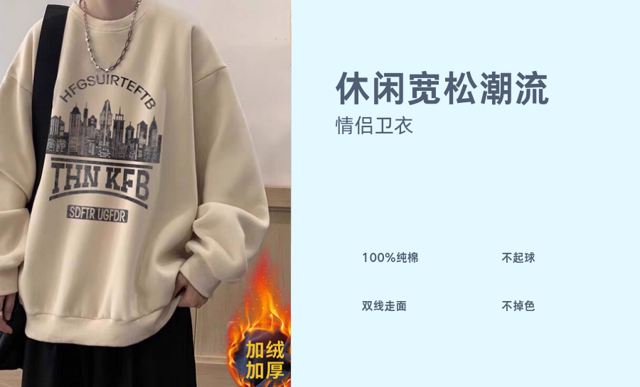 杏色美式复古卫衣男生秋季潮牌加绒无帽重磅上衣oversize宽松情侣