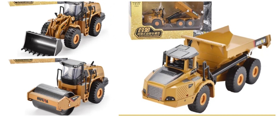 汇纳玩具合金静态挖土机自翻斗车叉车铲车压路机抓木机工程车模型