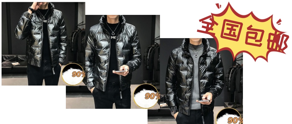 2022潮牌亮面羽绒棉男短款立领潮流青年冬季男士棉衣棉服保暖外套