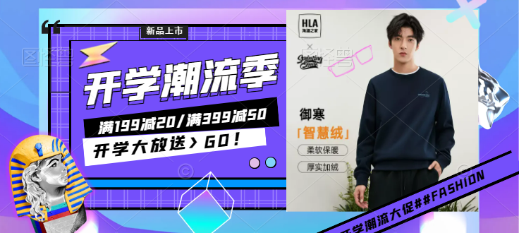 HLA海澜之家sportsday户外生活卫衣秋冬新加绒圆领运动印花长袖男