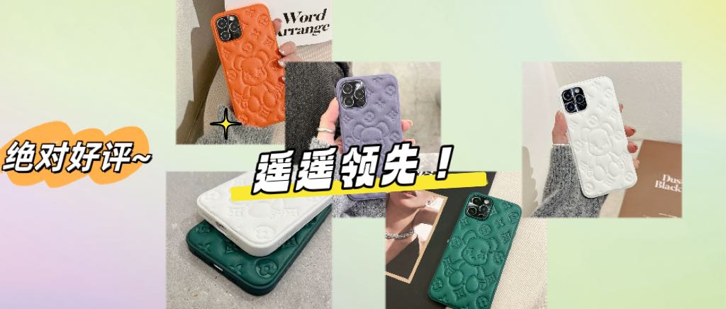 暴力熊苹果13手机壳12适用于iPhone14pro皮纹15压印XSmax潮牌卡通XR保护套7/8plus时尚奢华se2高档创意11情侣