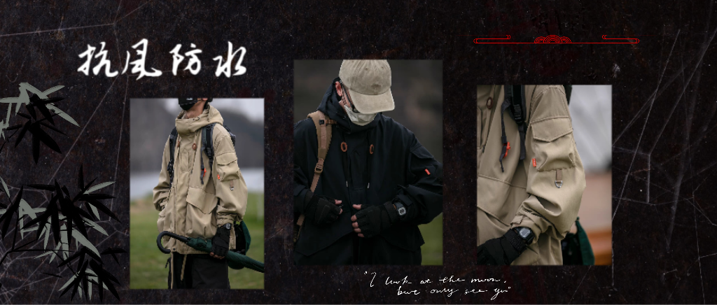 户外宽松立体口袋工装连帽冲锋衣猎装夹克外套