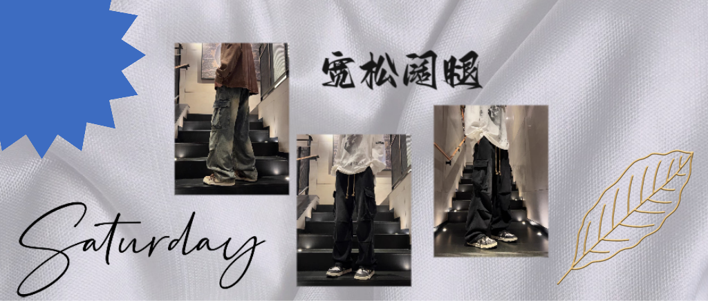 抽绳牛仔裤美式高街大口袋工装裤直筒宽松