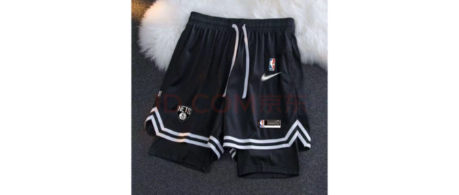 纵语美式短裤双层不过膝三四分裤湖人队同款篮球裤假两件带内衬运动裤 白色3图【斜纹带内