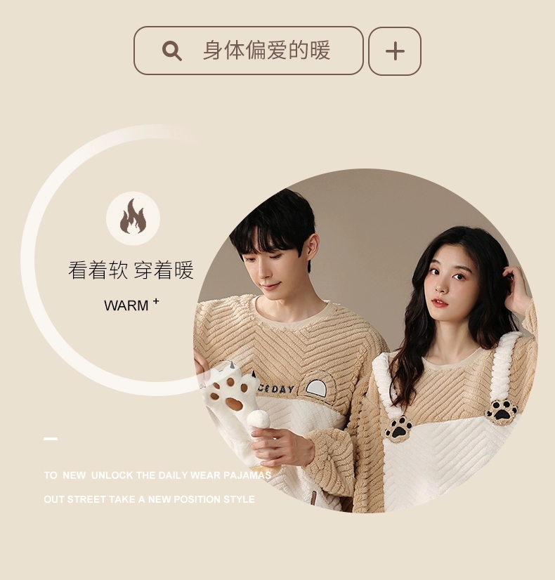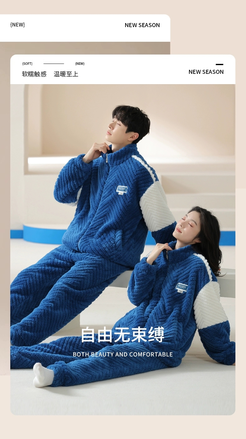 珊瑚绒情侣睡衣秋冬季加厚韩版保暖款法兰绒家居服女套装