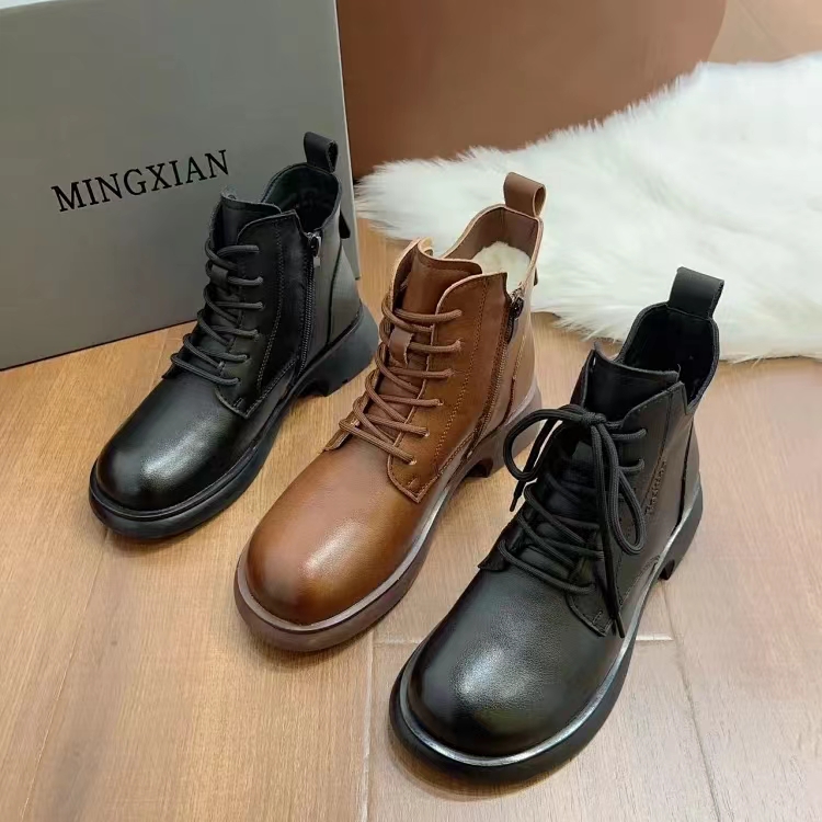 显腿直界永远的神~MINGXIAN后拉链显瘦V口短靴,真羊毛内里/薄绒里任选,鞋面全牛皮材质,4cm增高厚底,显瘦buff拉满