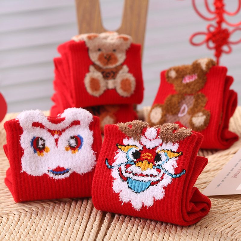 红色喜庆本命年必穿红色款式多种多样好运连连的醒狮袜