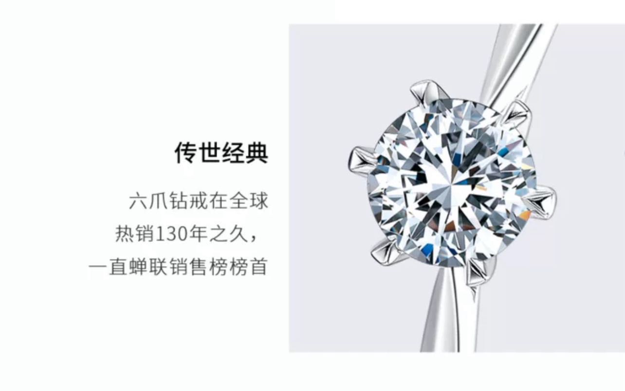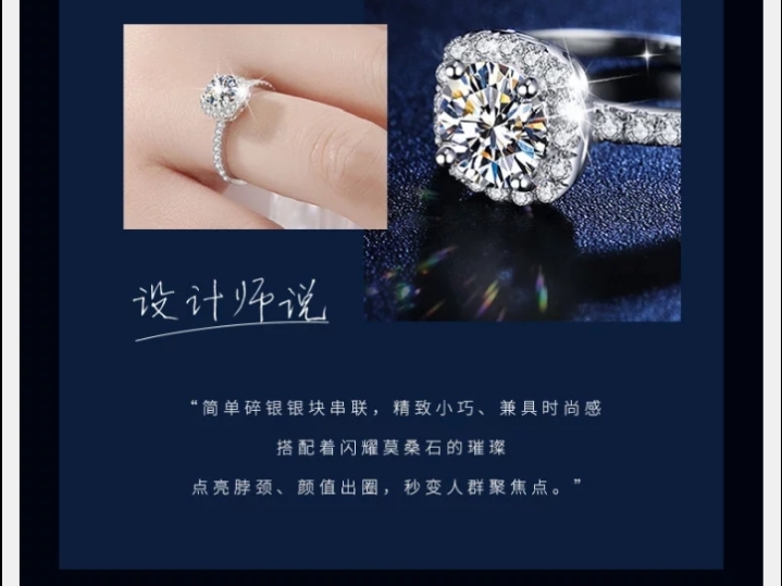 爱蒂尔 一克拉莫桑石钻戒925银戒指女求婚结婚指环情人节礼物开口指环