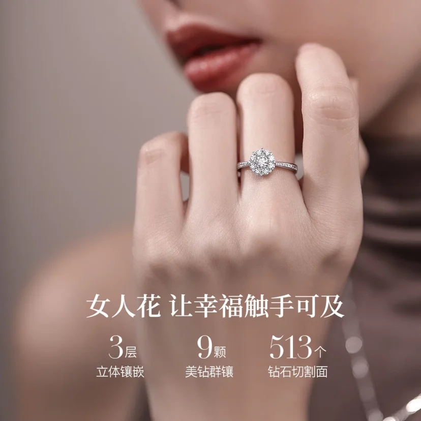 kader 莫桑石戒指纯银钻戒情侣对戒小众设高级感计求婚表白纪念日礼物