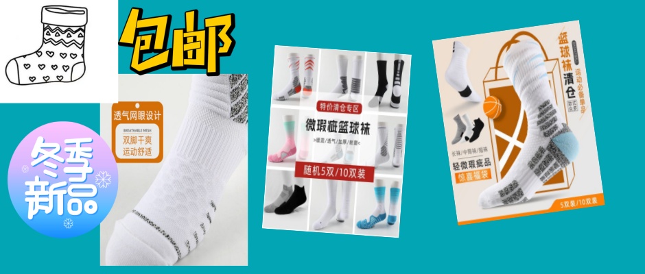 【10双】专业篮球袜子男中筒加厚毛巾底短筒跑步运动袜精英袜盲盒