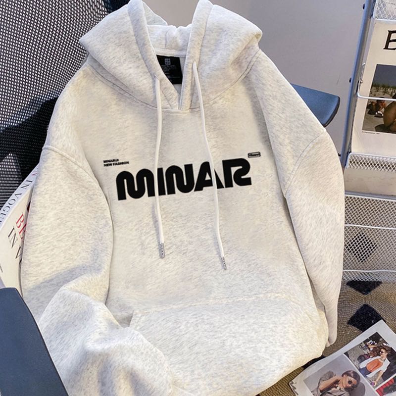 灰色连帽加绒加厚纯棉卫衣女秋冬款宽松oversize美式复古重磅外套
