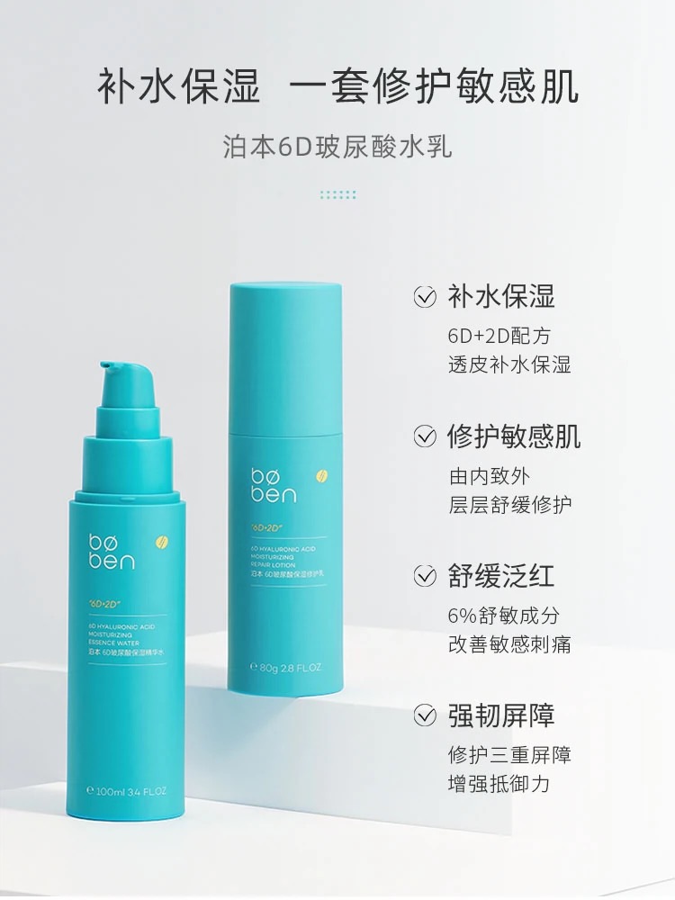 泊本6D玻尿酸水乳套装补水保湿舒缓修护敏感肌护肤