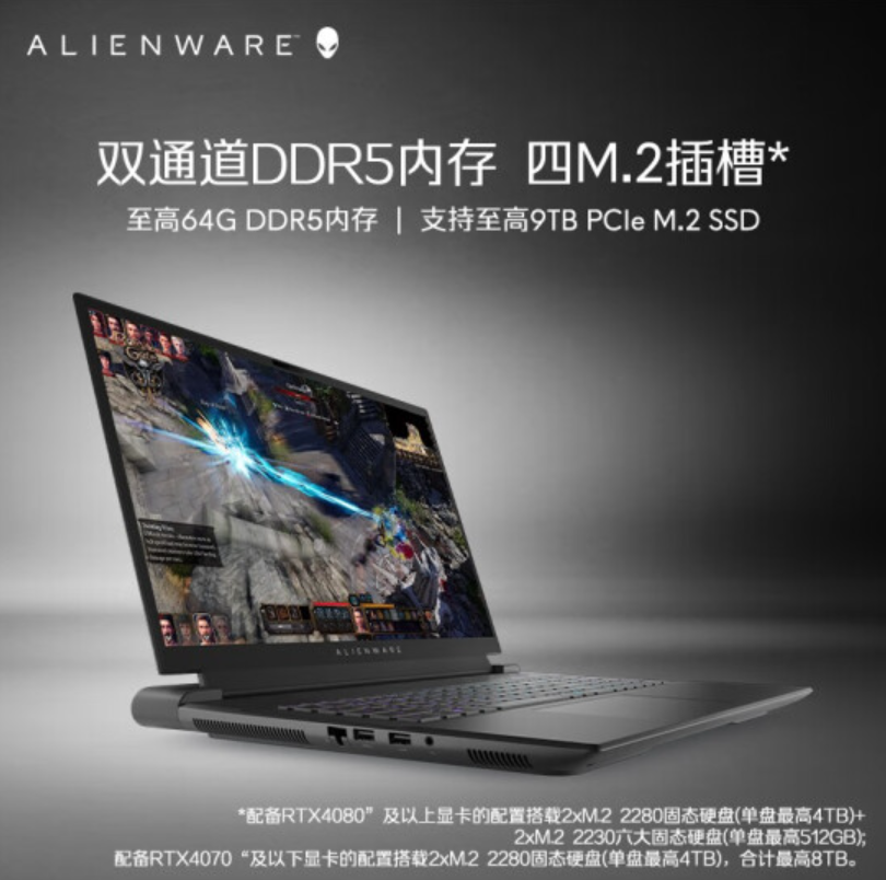 外星人(alienware)m18 高端游戏本全新13代酷睿笔记本电脑18英寸电竞 2996:i9 64G 2TB 4090【标配】 2.5K Cherry键盘