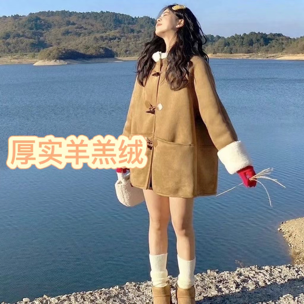 羊羔绒,加厚,度假风,纯色,中长款,连帽