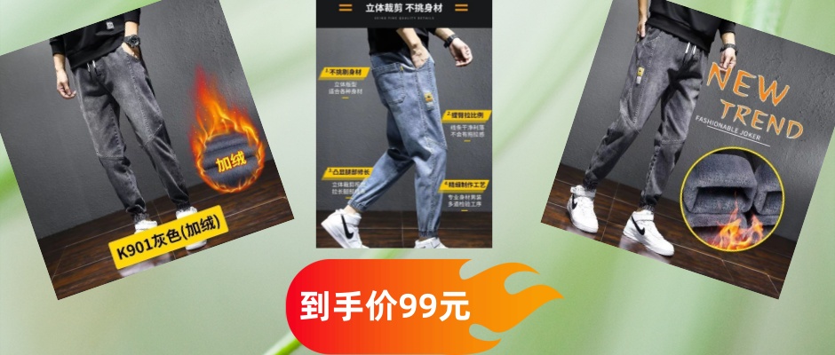 牛仔裤男宽松加绒加厚潮牌哈伦秋冬款冬天休闲哈伦保暖长裤子冬季