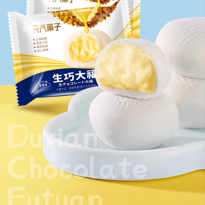 元汽果子和风生巧福团榴莲味6枚180g雪媚娘零食品大福下午茶麻薯