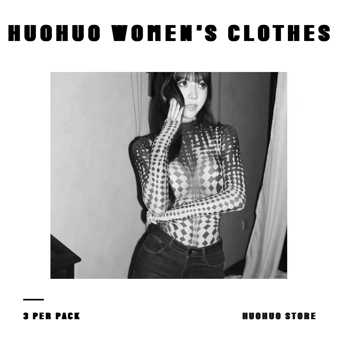 avenement23FW/热感波点纹身衣/网纱印花打底衫女显瘦T恤连体上衣