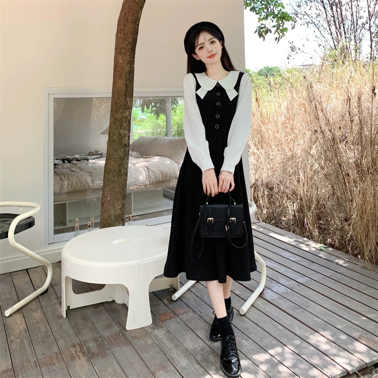 法式复古假两件收腰灯芯绒连衣裙女装秋冬新款显瘦气质裙子高级感
