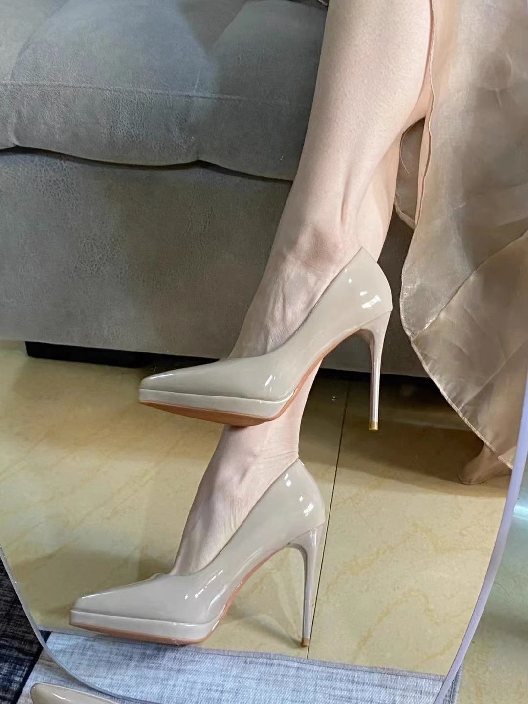 亮面尖头高跟鞋