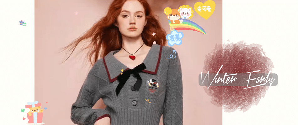 2023冬新款美式学院风甜美短款V领毛衣女