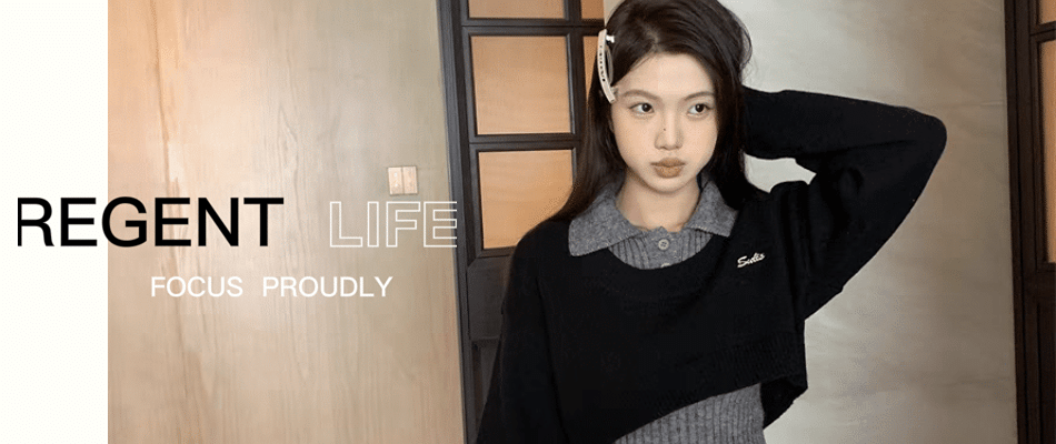 唔哈复古酷妹~刺绣圆领长袖短款罩衫+polo领针织背心甜辣两件套