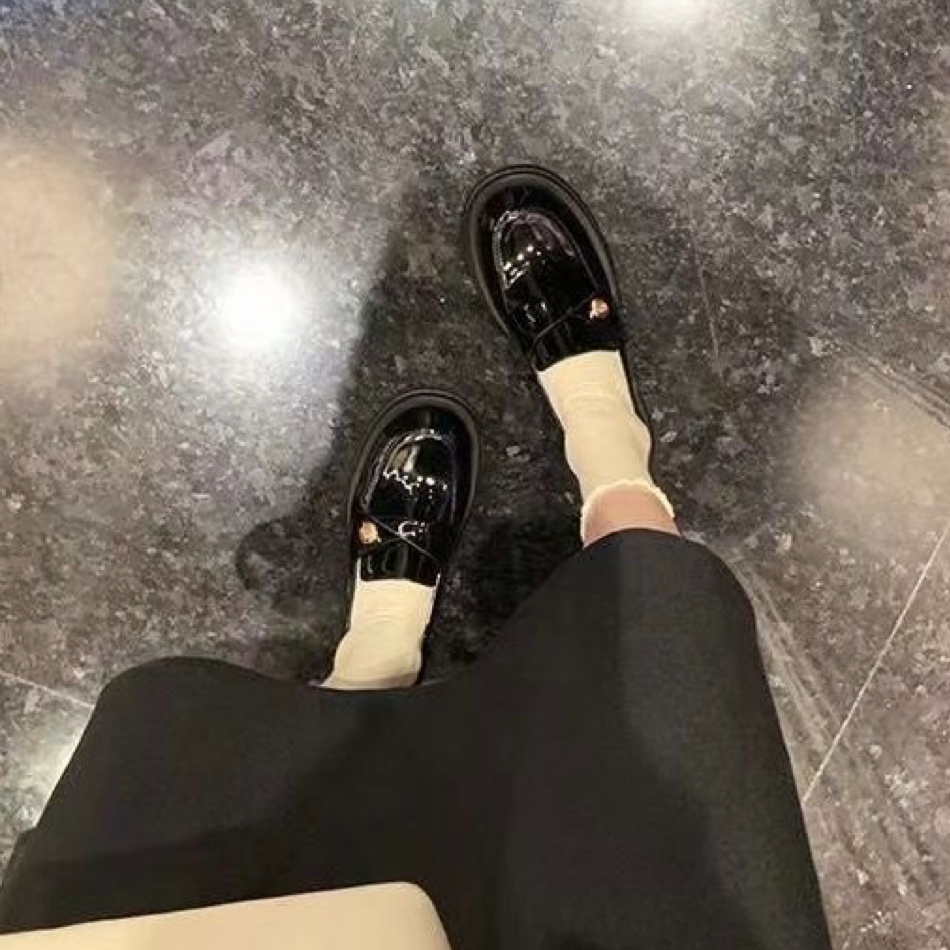 秋冬新款粗跟日常懒人休闲黑色厚底小香风皮鞋