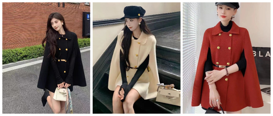 2023高档休闲简约潮流新款斗篷双排秋季时尚毛呢外套收腰大衣显瘦 红 S
