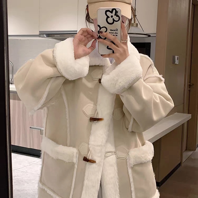 皮毛一体羊羔毛冬季厚外套女2023新款毛呢大衣高级感宽松呢子上衣