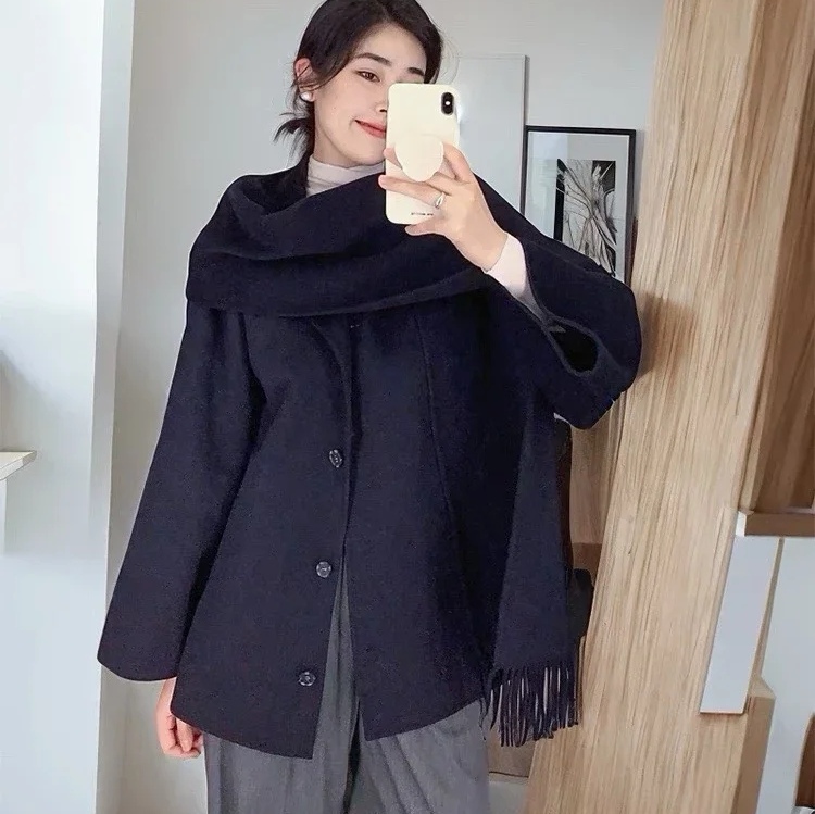 MPAM2023羊绒大衣女秋冬新款双面中长款连帽宽松100羊毛呢风衣外套