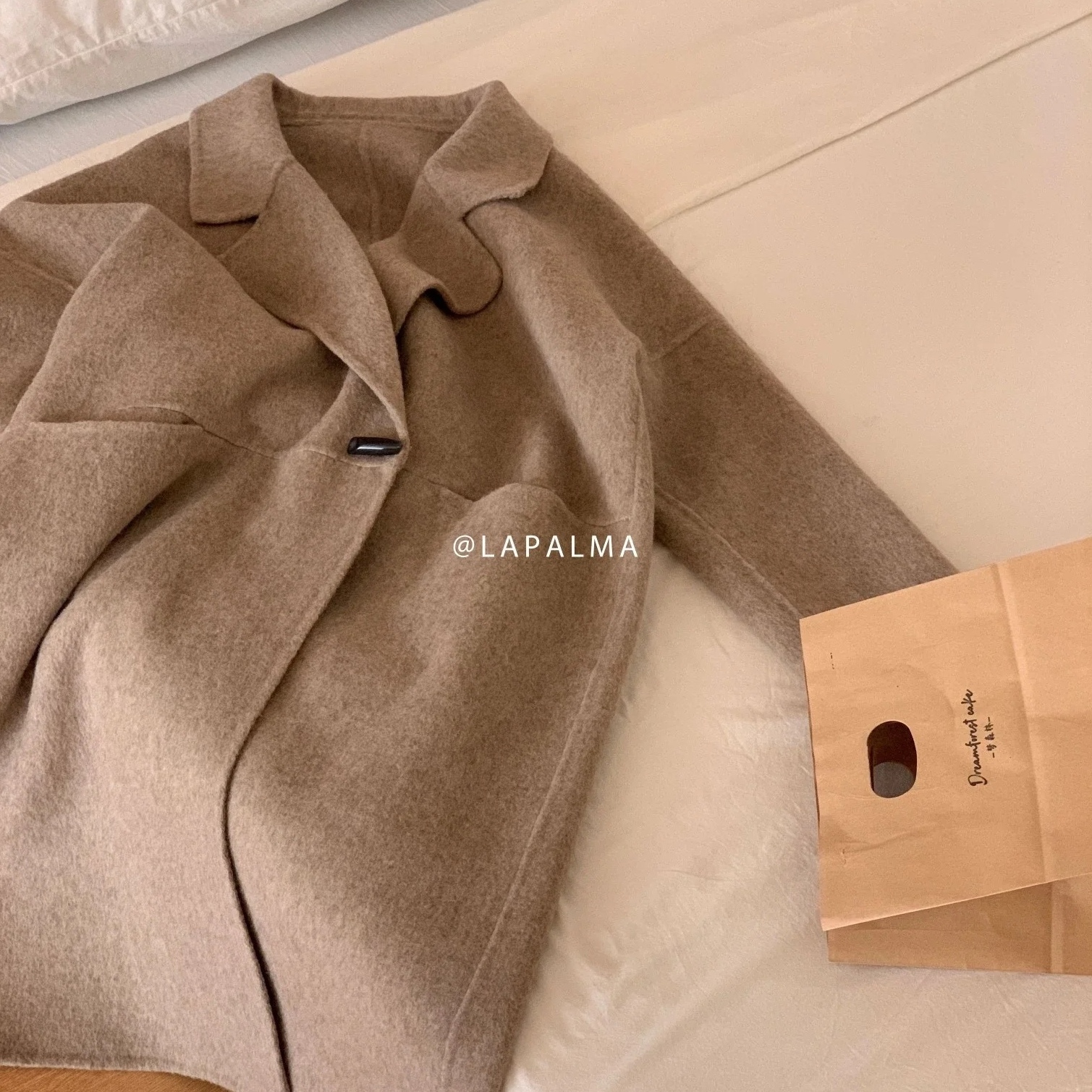 夏诗文 羊毛混纺气质V领廓形双面呢外套女秋冬季正反两穿毛呢大衣