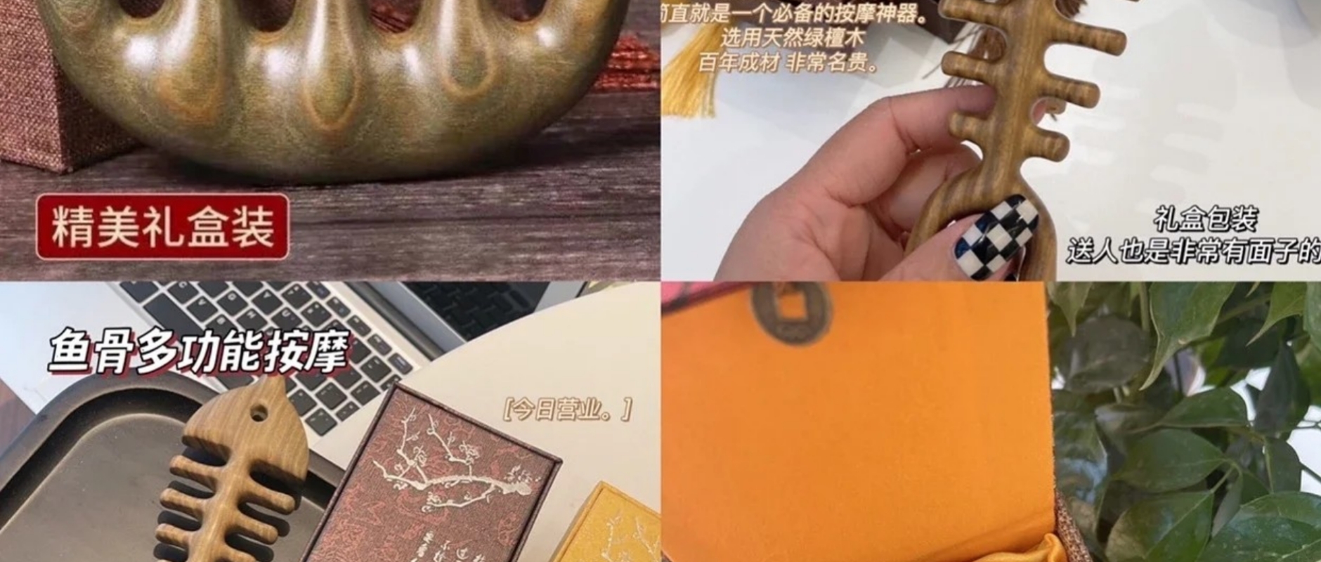 南美天然绿檀五经按摩木梳(小巧便携,养生按摩) 介绍:木梳富含天然油脂,可以滋养头发是理想的护发用品