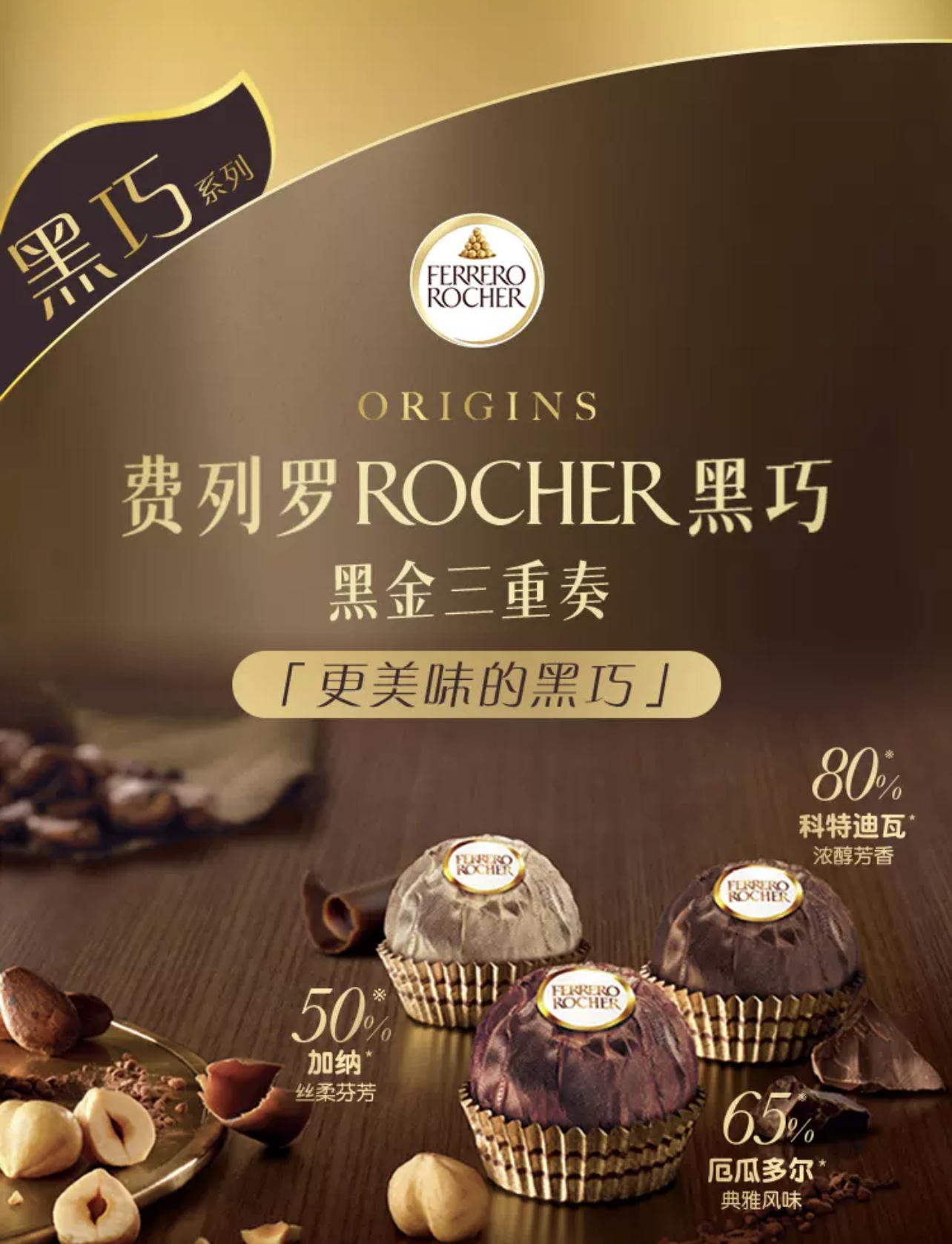 费列罗官方旗舰店官网榛果威化黑巧克力制品24粒装休闲零食礼盒
