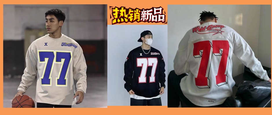 脉冲系列 美式冰球服77号原创复古橄榄球情侣国潮长袖套头卫衣男 35.9元